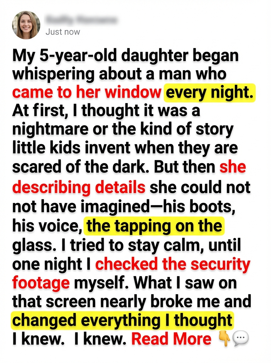 “He comes at night,” she said calmly. “He checks the window first. Then he talks to me for a bit.”